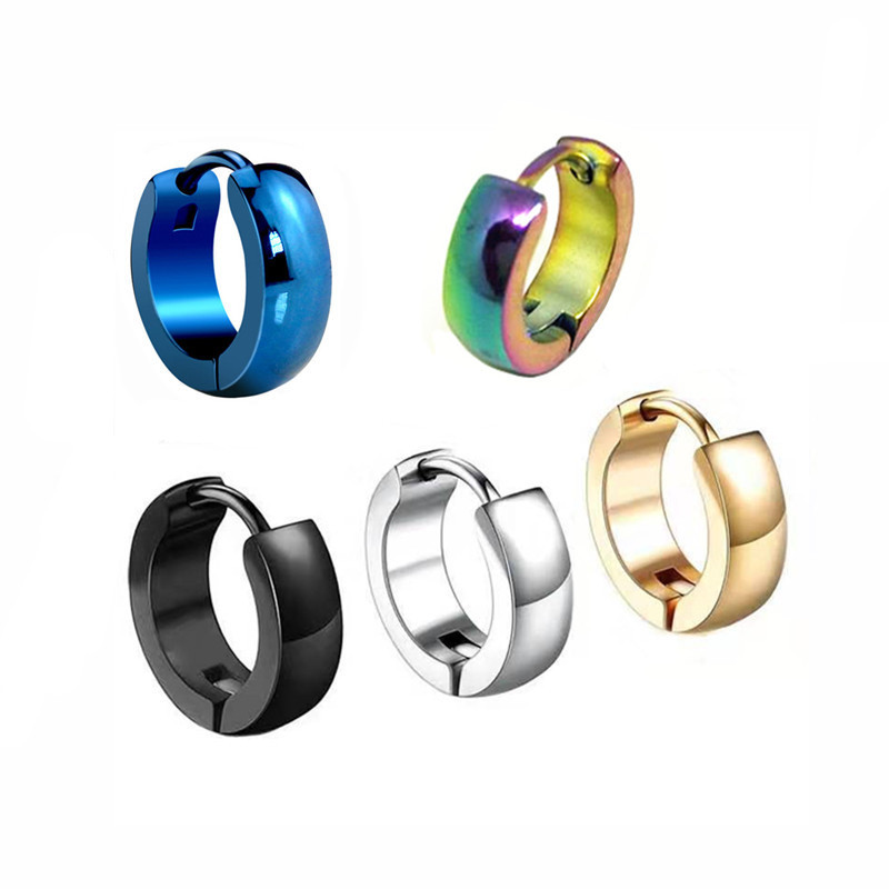 Factory direct titanium steel earrings exaggerated stainless steel big ear ring elastic ear buckle shrimp male buckle big wire earrings round