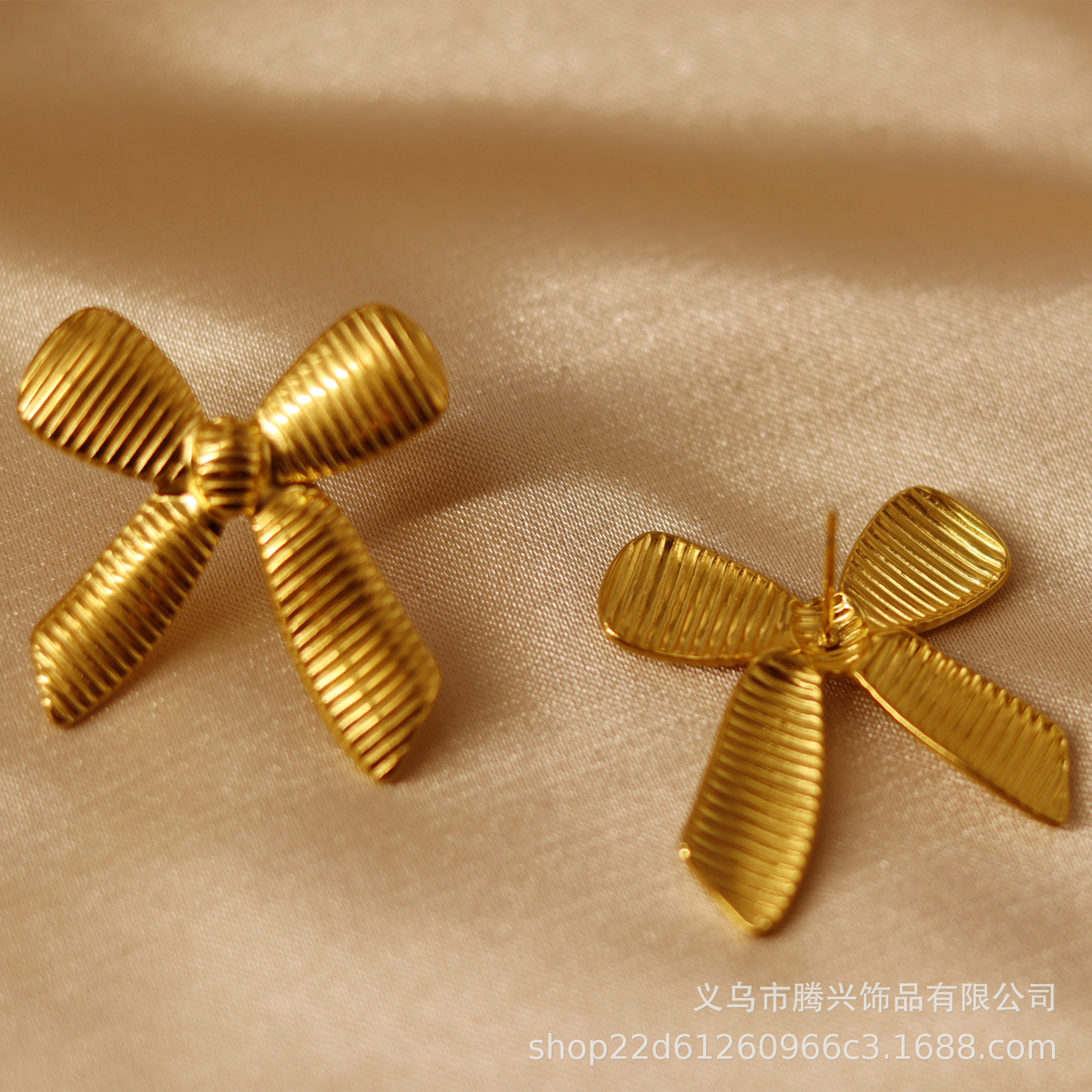 Hot Selling 18K Gold Electroplated Bow Earrings for Women, Fashionable and Simple Non-Fading Earrings Ins Style Cross-Border Popular Jewelry