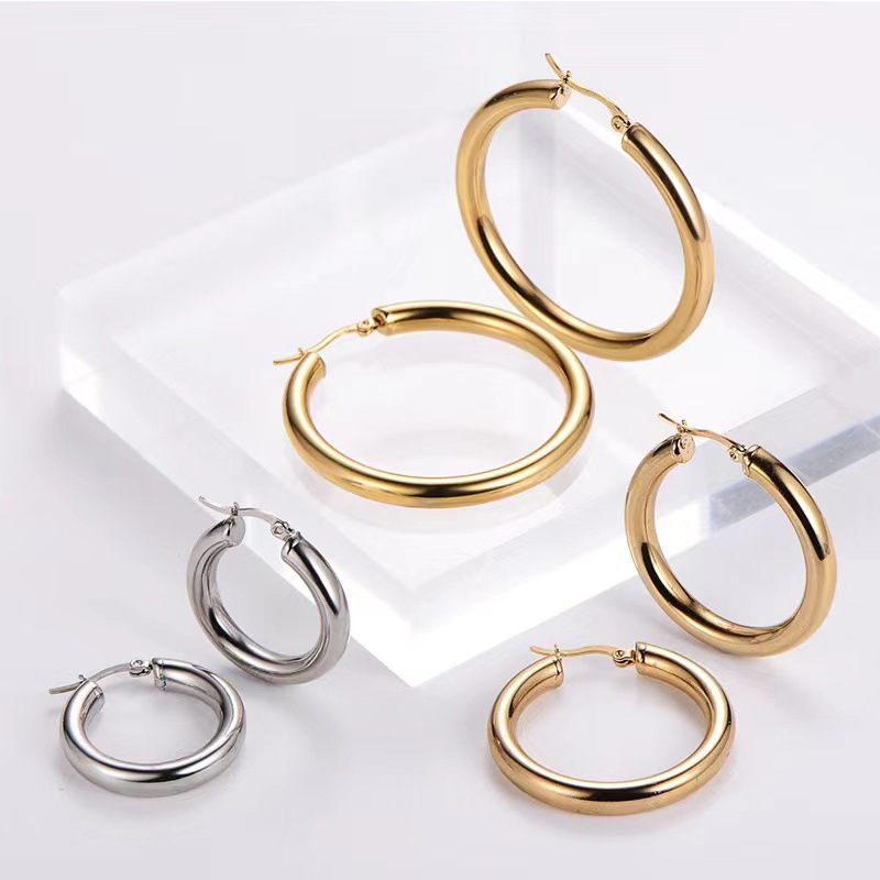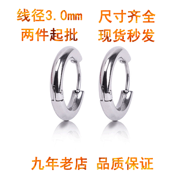Amazon's Best-Selling 3.0 Stainless Steel Wire Earrings, Export Titanium Steel Bold Round Ear Clips, Trendyy Hip-Hop Earrings