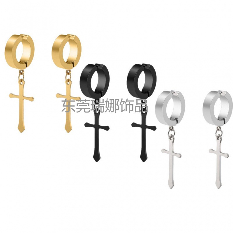South Korea fashion cross pendant curved steel titanium ear buckle is not easy to fade without ear hole titanium steel ear clip earrings wholesale