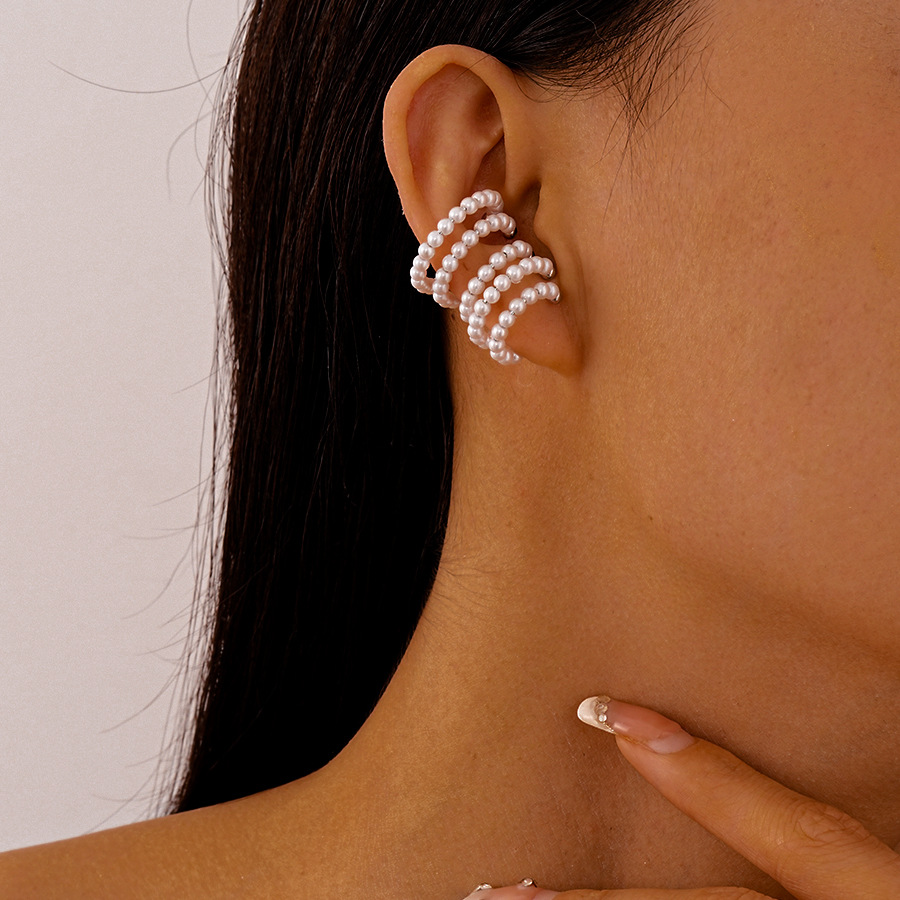 Ear-less French-style imitation pearl multi-layer beaded ear bone clip retro simple temperament niche high-end earrings for women