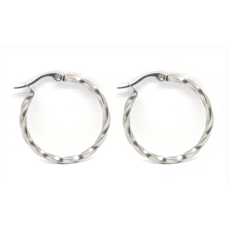 European and American stainless steel waterproof non-fading golden twist round earrings personality temperament Joker titanium steel ear buckle ear ring