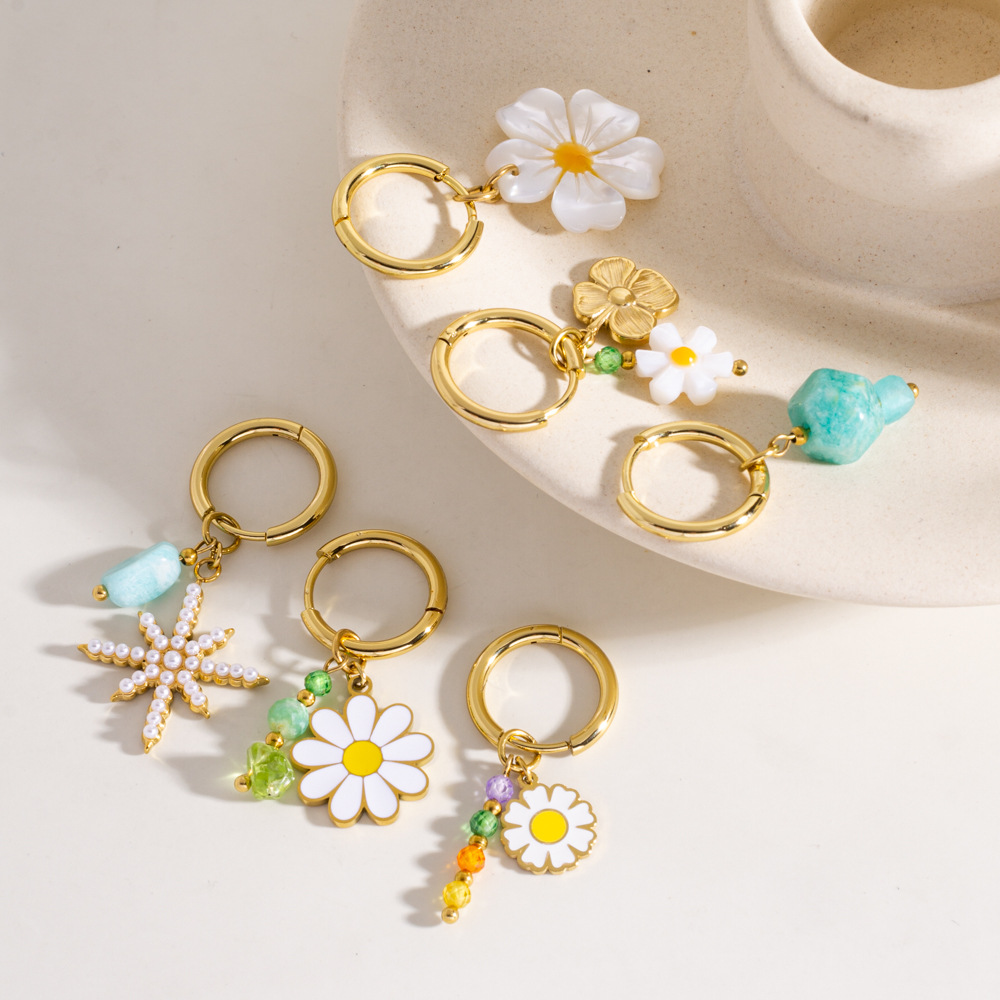 There are original design sweet fashion 14K gold titanium steel earrings Amazon new daisy flower pendant earrings