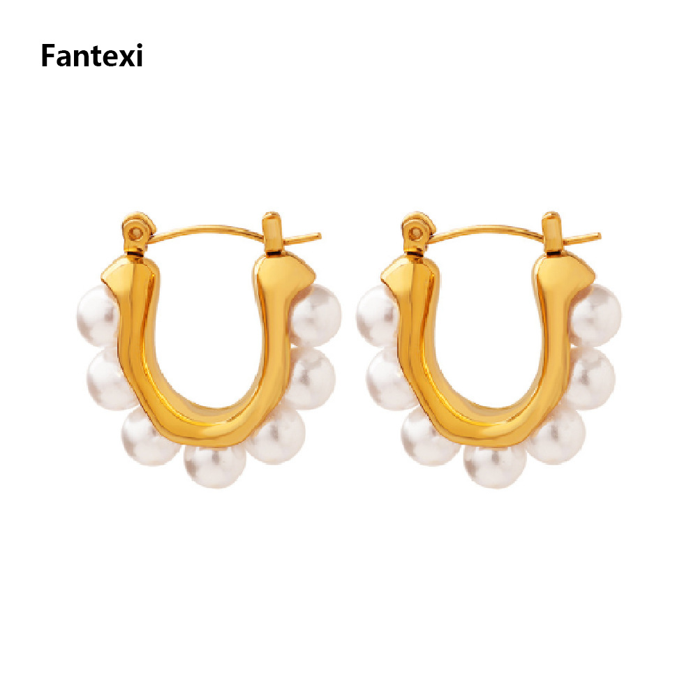 【2025 Cross-Border Hot Item】Titanium Steel Pearl Ear Cuffs for Women, Hypoallergenic U-Shaped Ear Clips, French Light Luxury Earrings Factory