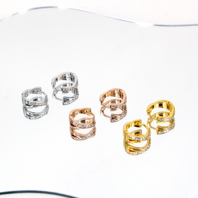 Round wire earrings with diamonds earrings titanium steel earrings golden simple all-match earrings earrings cross-border hot selling manufacturers direct supply