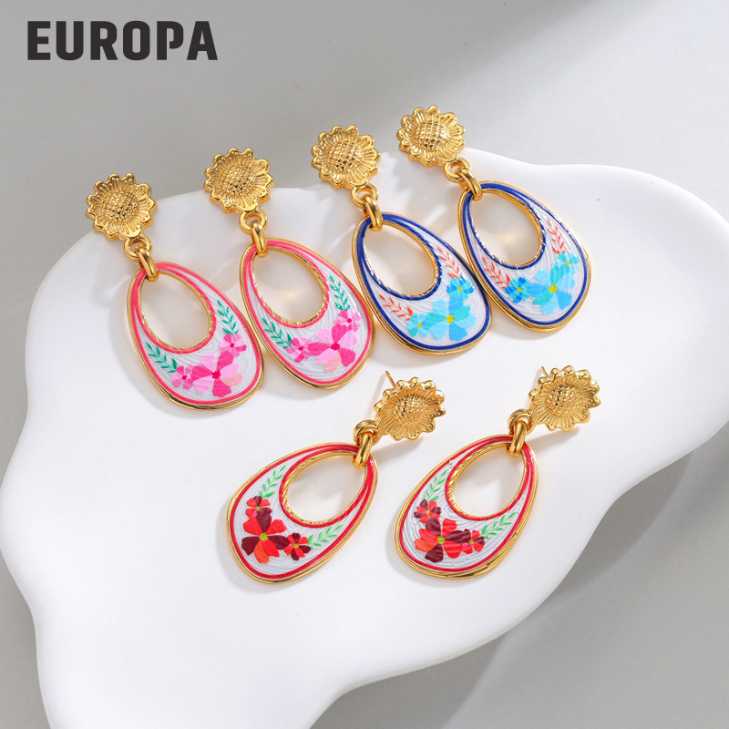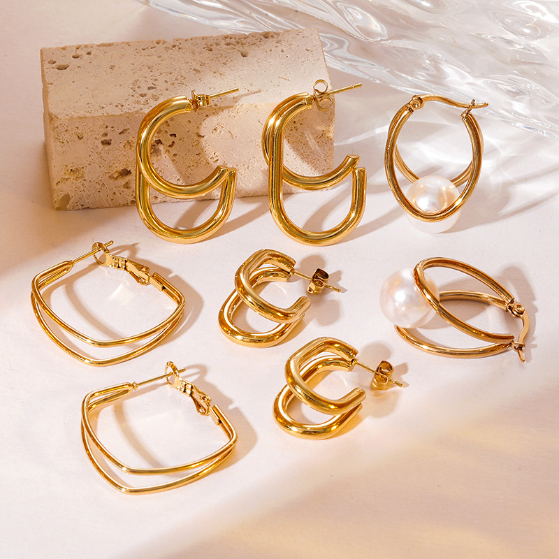 French retro stainless steel earrings high sense plated 8k fashion geometric shape earrings temperament non-fading earrings for women