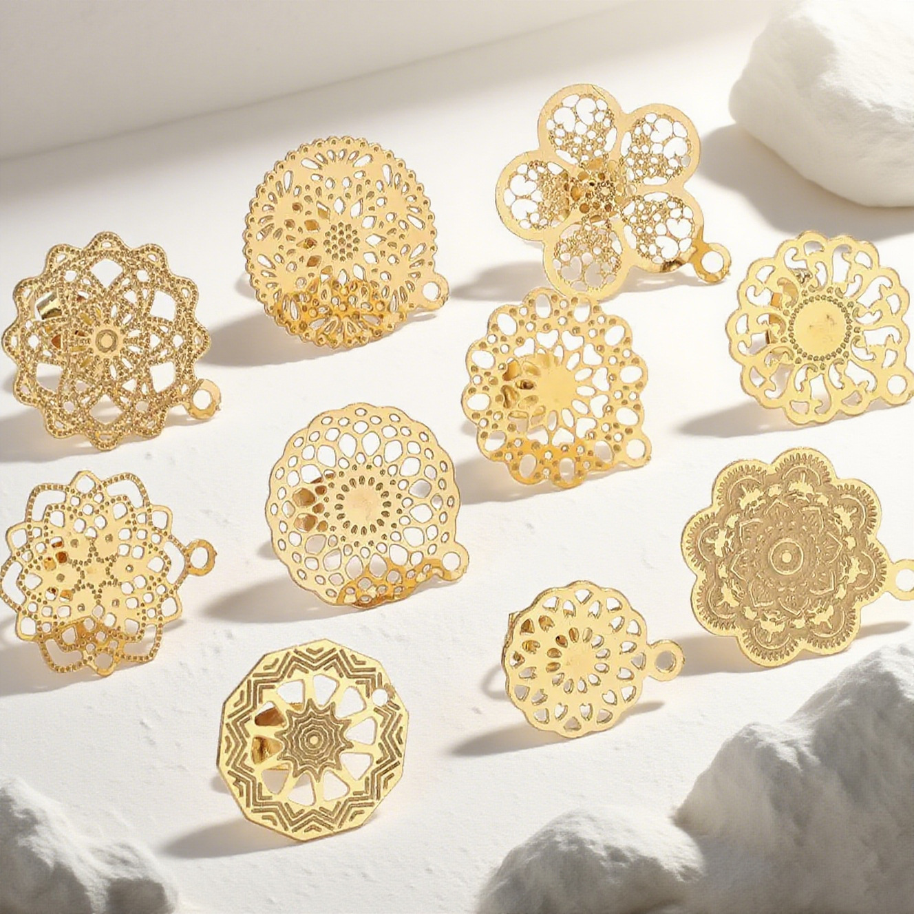 Stainless Steel Bohemian Cut Out Pattern Ear Hook with Hanging Vacuum Earrings DIY Handmade Jewelry Accessories Ethnic Style