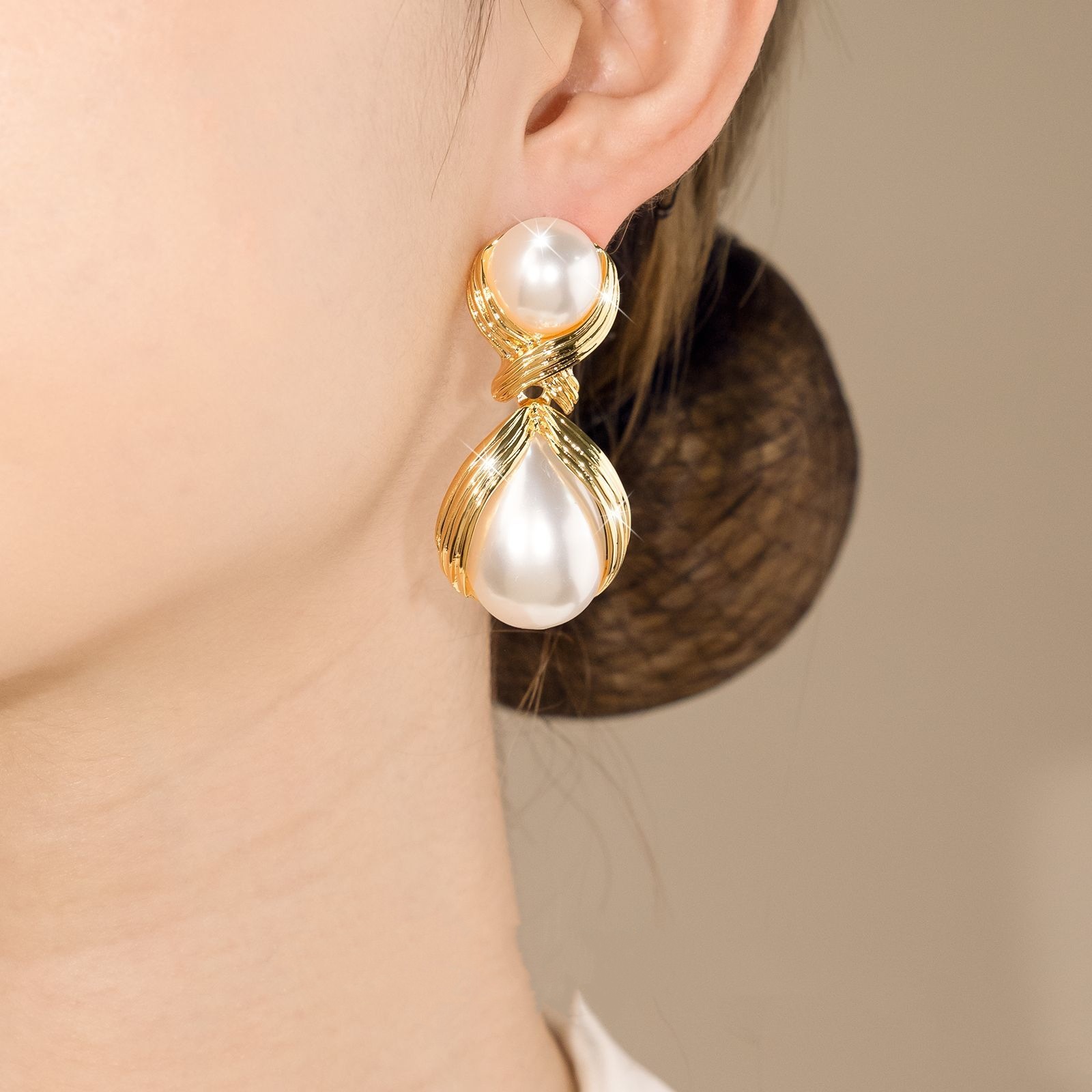 Vintage Second-Hand Pearl Light Luxury Retro Exaggerated European and American Earrings for Women Banquet Evening Dress Long Earrings