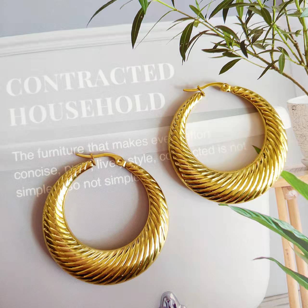 Europe and the United States cross-border retro fashion geometric gradient size golden earring stainless steel simple gold-plated earrings jewelry