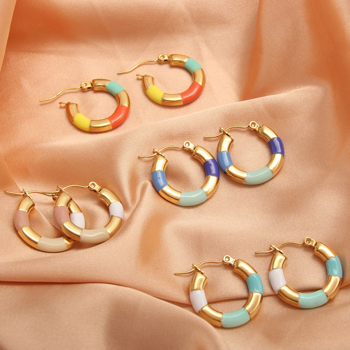 Stainless steel colorful earrings round earrings earrings drop oil simple bamboo joint jewelry niche high-grade titanium steel accessories