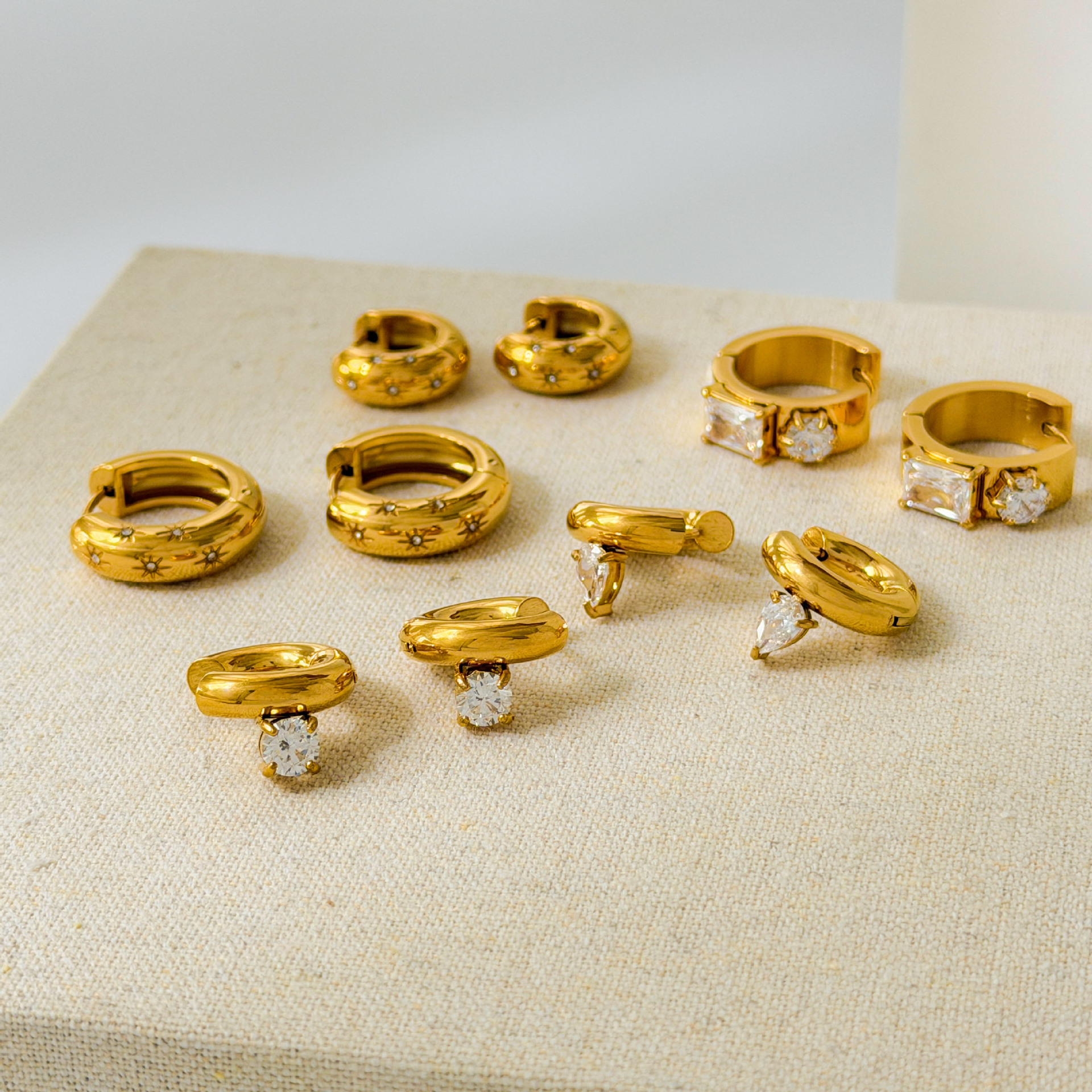 European and American fashion niche temperament explosion earrings stainless steel plated 18K gold micro doughnut ring small ear buckle women