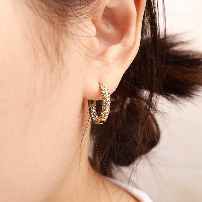 Europe and the United States hot selling simple all-match earrings jewelry stainless steel plated 18K gold full diamond zircon round ear buckle women's cross-border