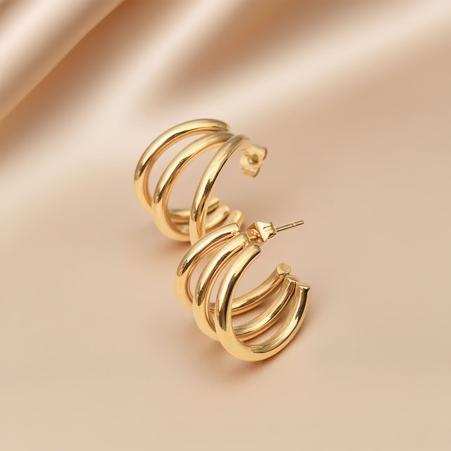 European and American Ethnic Style Irregular Three-layer Hollow Ear Buckle Earrings Women's High-end Light Luxury Simple Design Yiwu Earrings