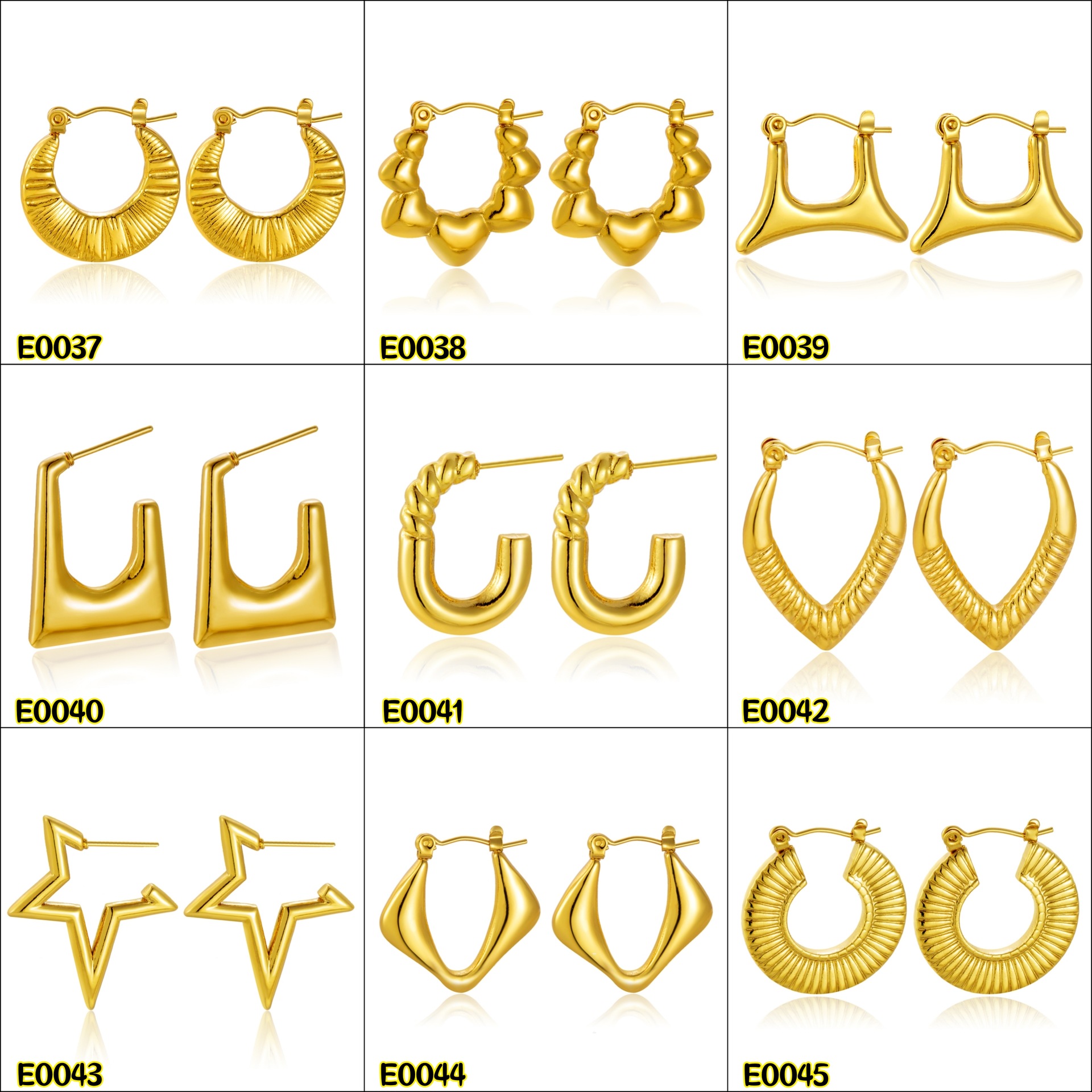 Cross-border European and American ins fashion high-end sense simple temperament all-match furnace real gold-plated 18K stainless steel hollow earrings