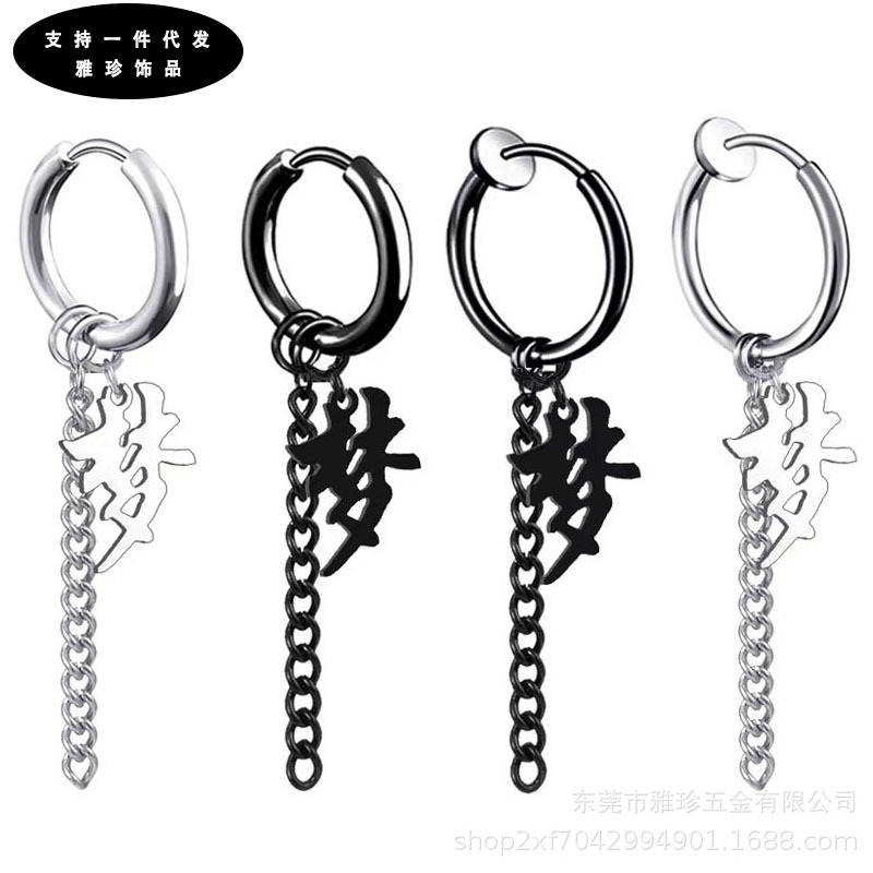 Cross-border retro stainless steel earrings diamond pendant ear buckle hip hop punk earrings titanium steel ear bone buckle factory sale