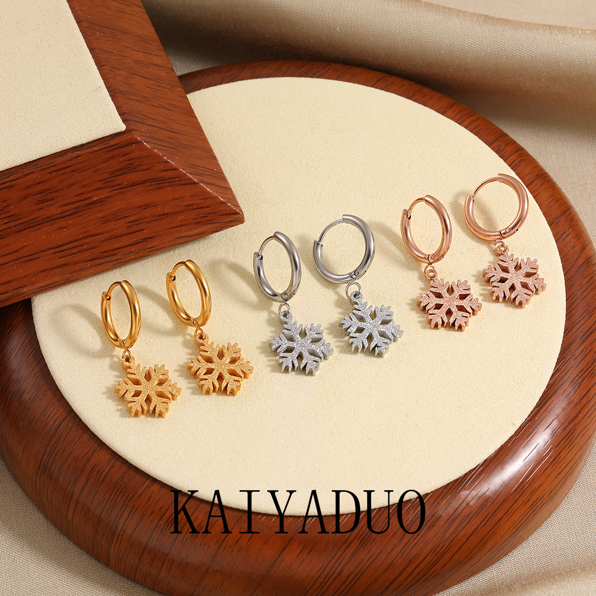 Korean style ins niche New Frosted snowflake earrings fashionable personalized gold-plated high-grade all-match titanium steel earrings
