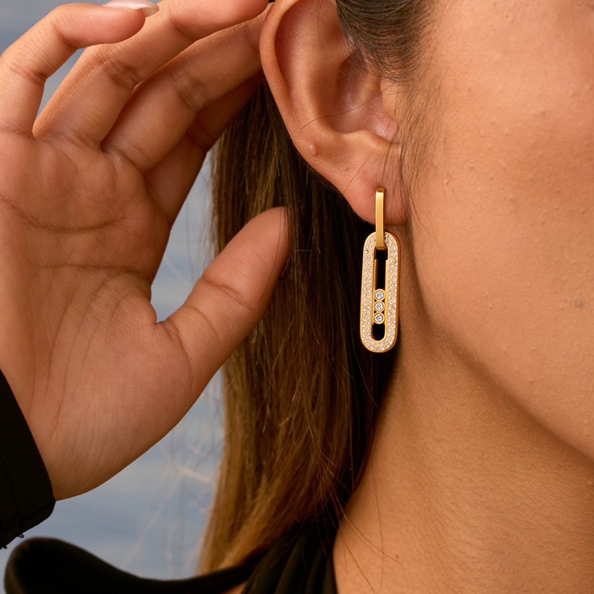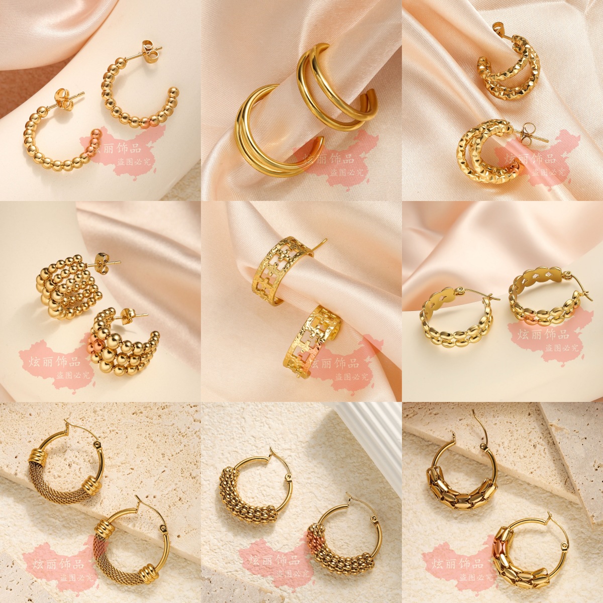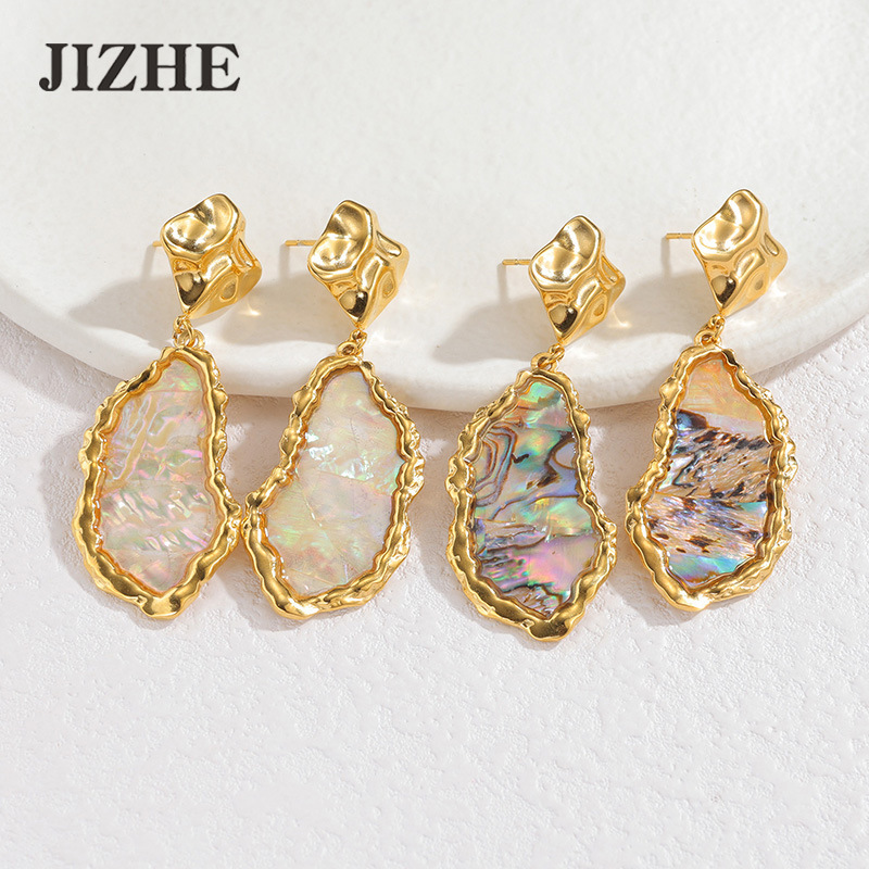 Omaca Double-Layer C-Shaped Color-Blocked Earrings European and American Ins Popular 18K Gold Stainless Steel Earrings Ready for Sale