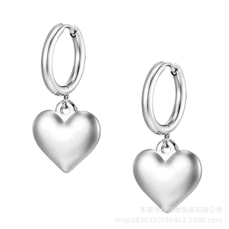 European and American Cross-Border Fashion Pendant Earrings Versatile Stainless Steel Round Earrings Peach Heart Women's Simple Earrings Wholesale