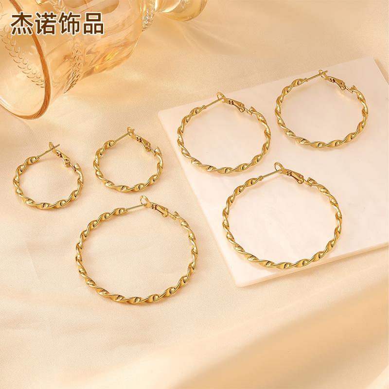 European and American Cross-Border Earrings for Girls, Fashionable and Simple Work Clothing Geometric Ins Style Round Plain Hoop Earrings Stainless Steel Ear Buckles