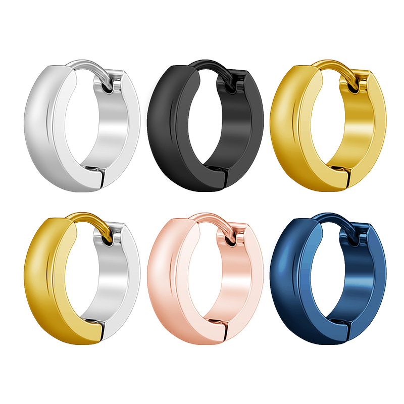 Korean Style Fashionable Titanium Steel Round Earrings Smooth Flat Earrings Flat Men's Piercing Earrings Earrings Hand Polished