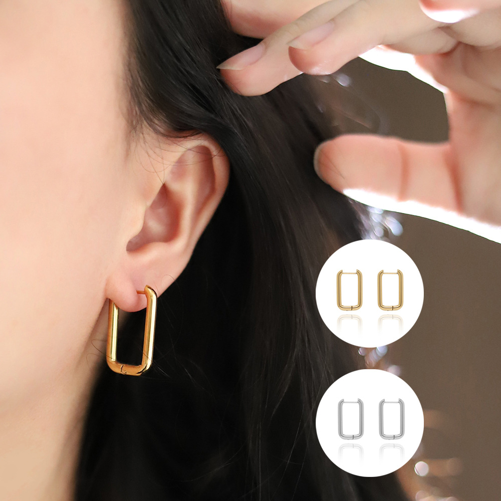 ED152 Simple Functional Square Ear Buckle Earrings European and American Joker Titanium Steel Plated 18K Gold Bath Sleeping