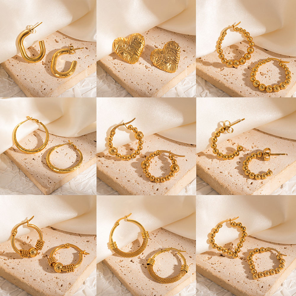 Popular C-Shaped Stainless Steel Earrings Gold-Plated Heart Round Geometric Earrings Accessible Luxury High-Grade Non-Fading Titanium Steel Earrings