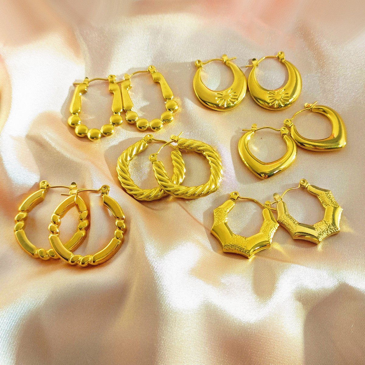 Cross-Border Simple Round Stainless Steel Earrings for Women, Fashionable and Versatile, 18K Gold Vacuum Electroplated Titanium Steel Earrings