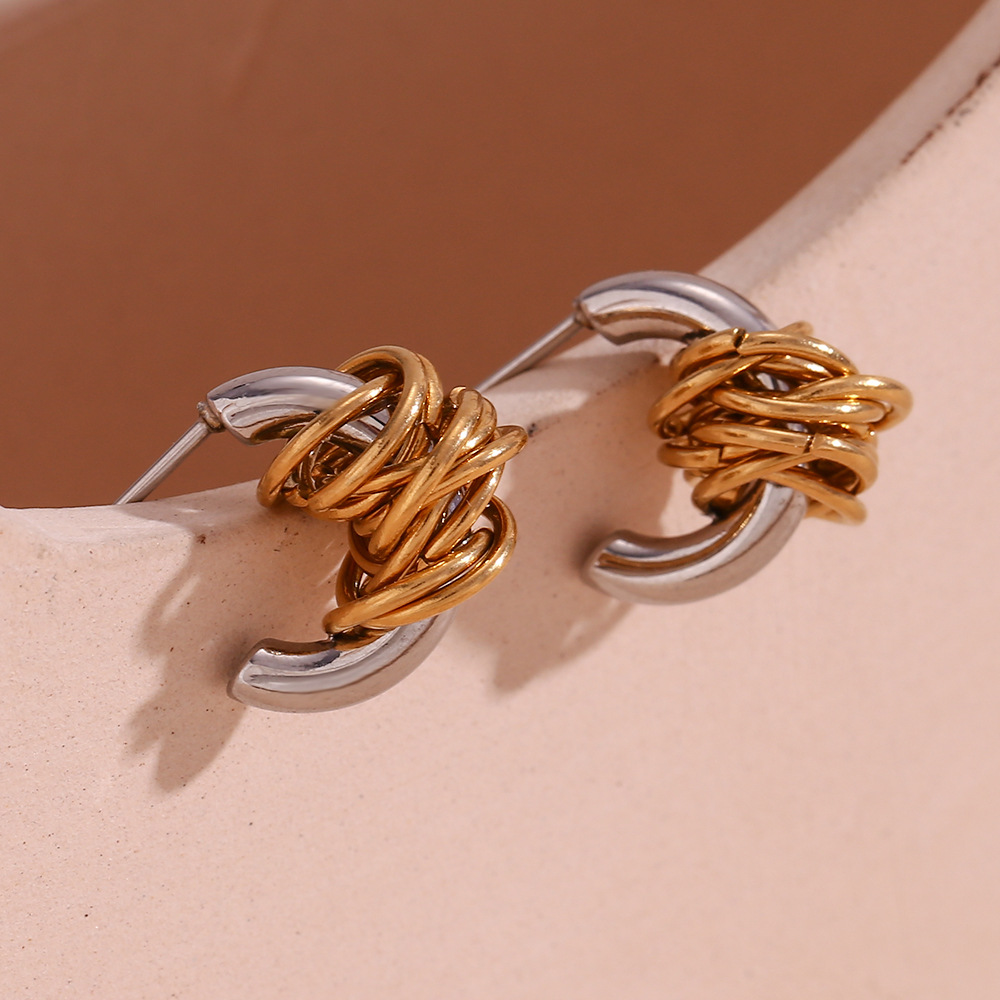 European and American cross-border fashion niche personalized earrings stainless steel plated 18K mini creative winding C- shaped gold earrings for women