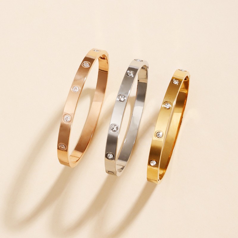 Cross-Border Fashion Ten Diamond Titanium Steel Bracelet for Women Full Nail Buckle Stainless Steel Bracelet Full Diamond Kajia Nail Jewelry Wholesale