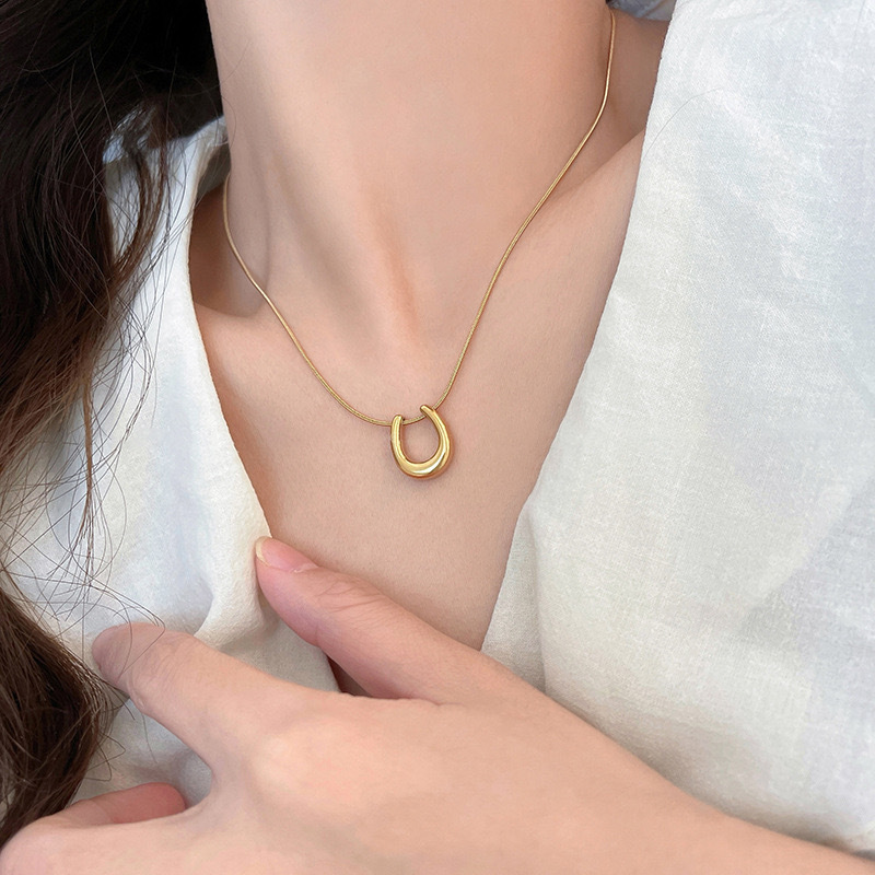 Titanium steel non-fading simple horseshoe U-shaped pendant sweater necklace jewelry women's all-match high-grade stainless steel clavicle