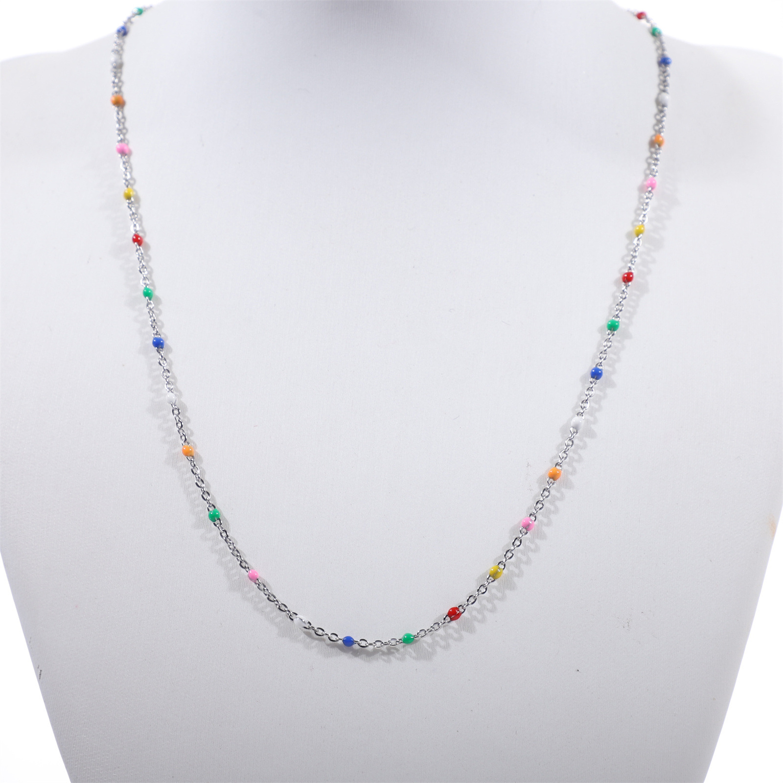 Jin Yiyuan Stainless Steel Bead Chain Necklace Titanium Steel Drop Glaze Color Preservation Necklace Cross Enamel Dopamine Color Female