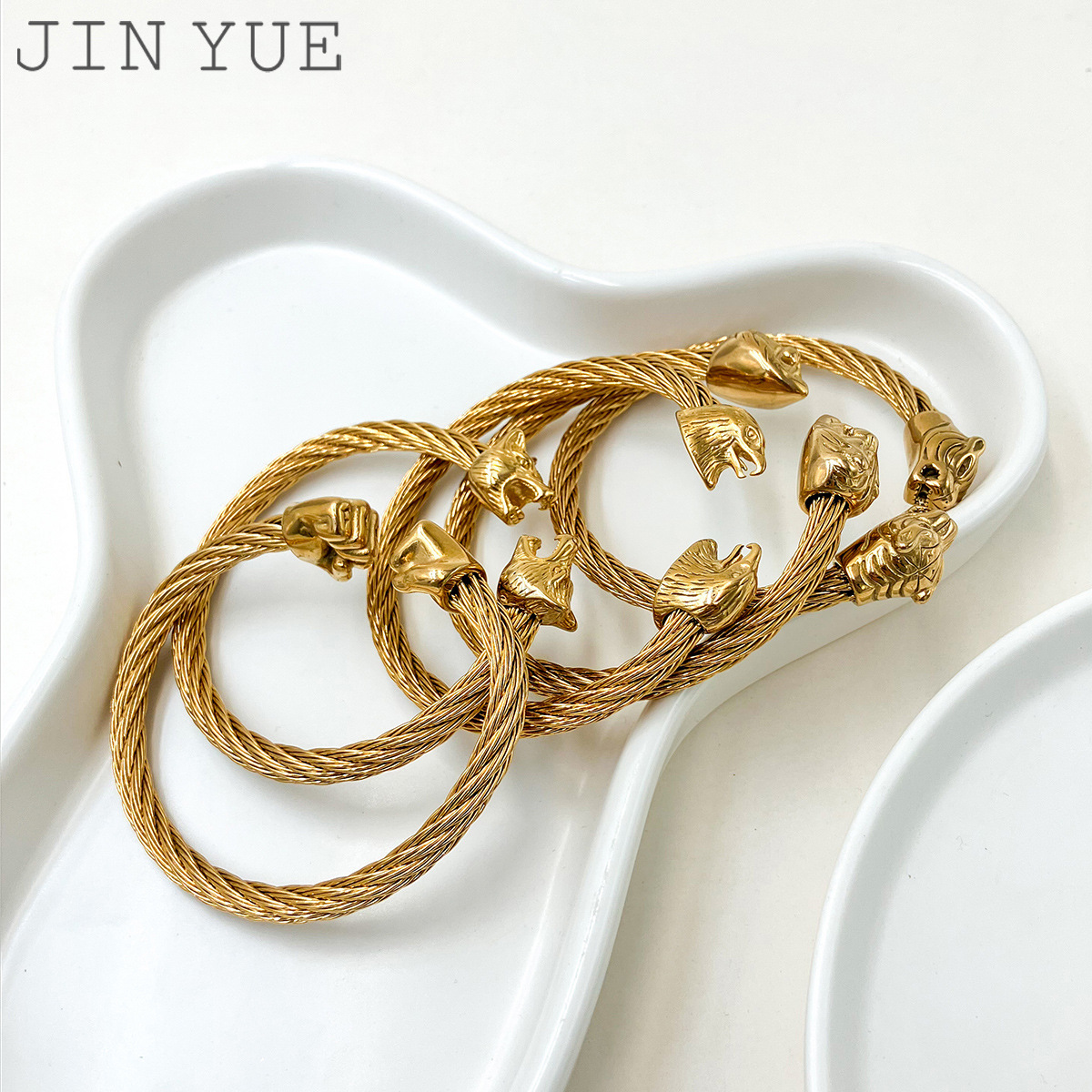 Cross-Border fashion gold-plated stainless steel double dragon head Lion Wolf leopard head open Gothic style men and women same bracelet