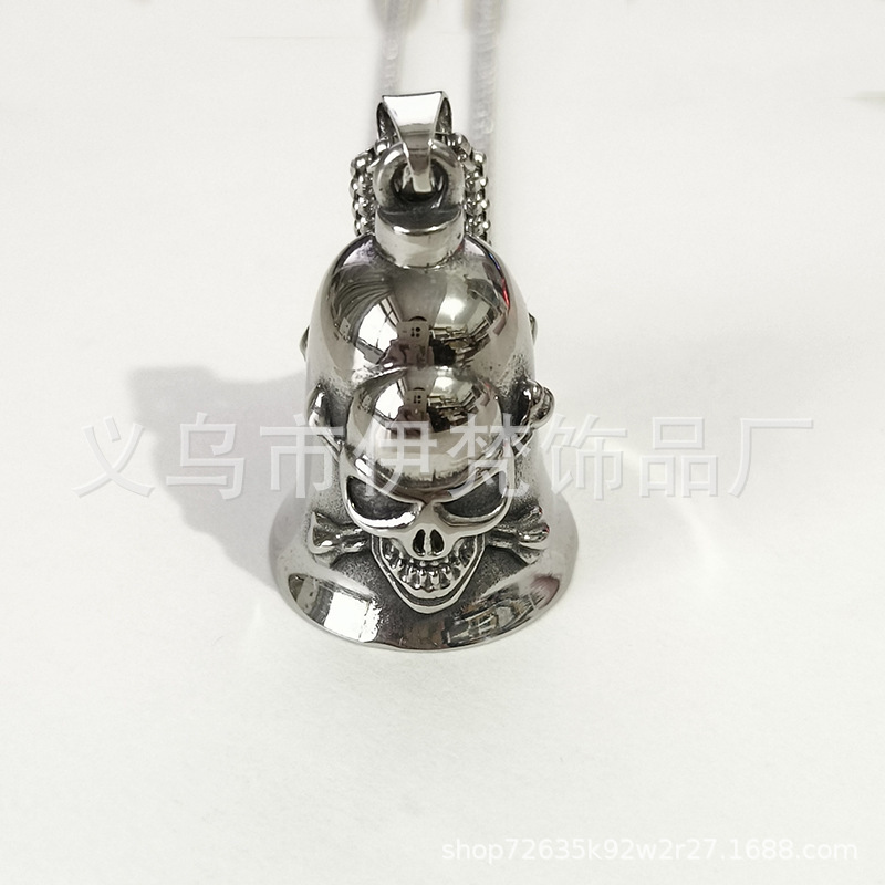 Foreign Trade Cross-border Retro Punk Locomotive Style Stainless Steel Chain Necklace Skull Lucky Bell Keychain