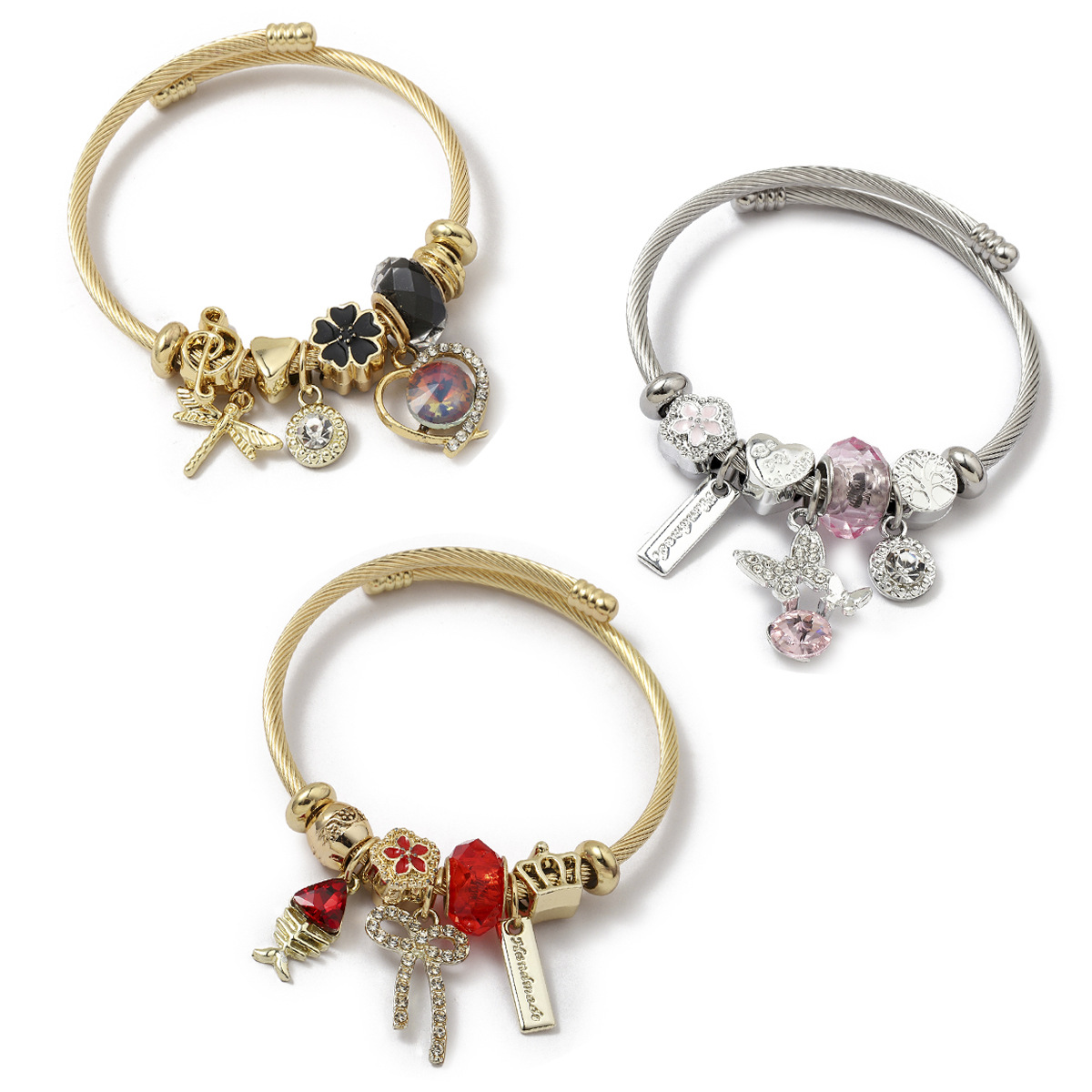 Fashion foreign trade PAN home stainless steel bracelet crystal dragonfly pendant gold bracelet new bracelet jewelry