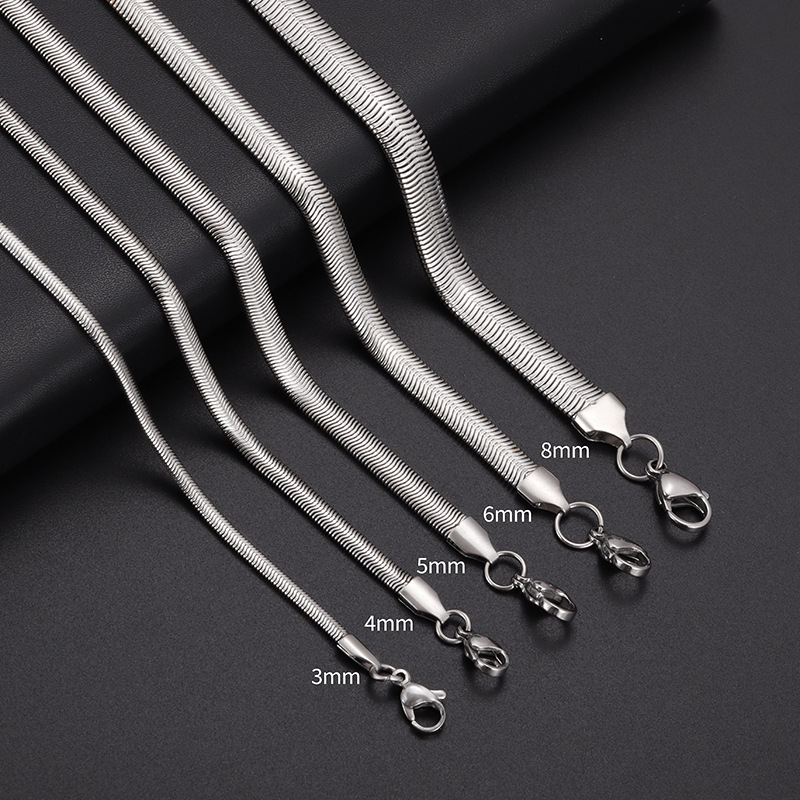 European and American Hip-Hop Thick and Thin Flat Snake Bone Necklace High Street Titanium Steel Clavicle Chain Necklace Versatile Ins Street Men and Women Titanium Steel