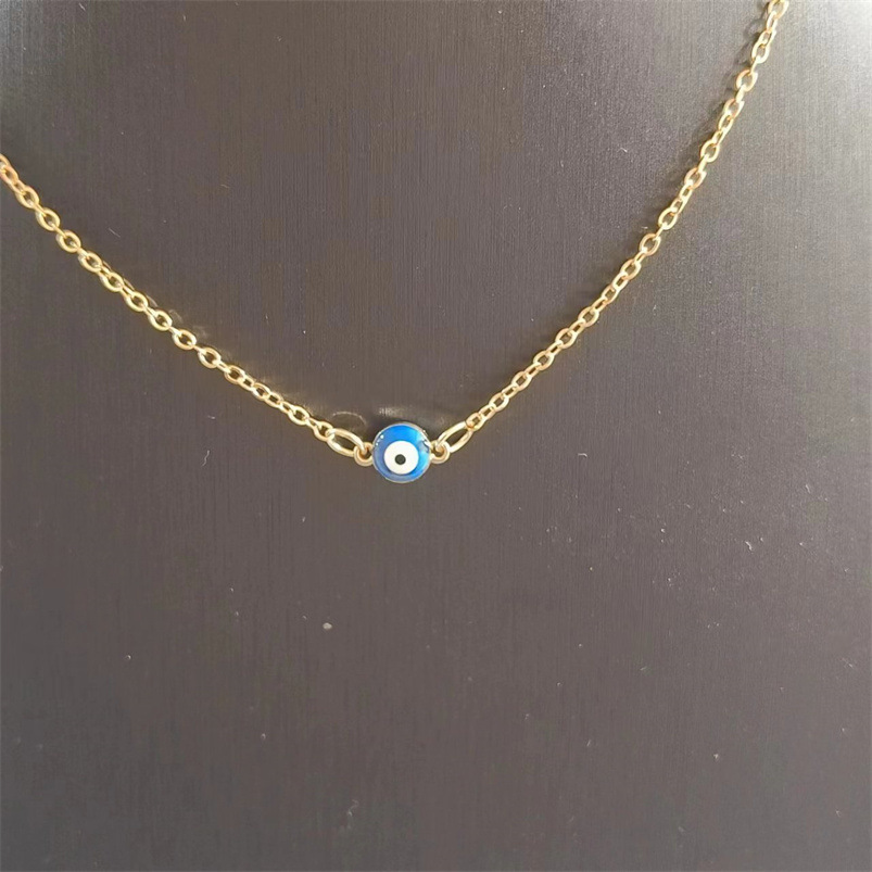 European and American Fashion Personalized Alloy Stainless Steel Cross Chain Imitation Eye Pendant Simple and Versatile Women's Necklace Wholesale