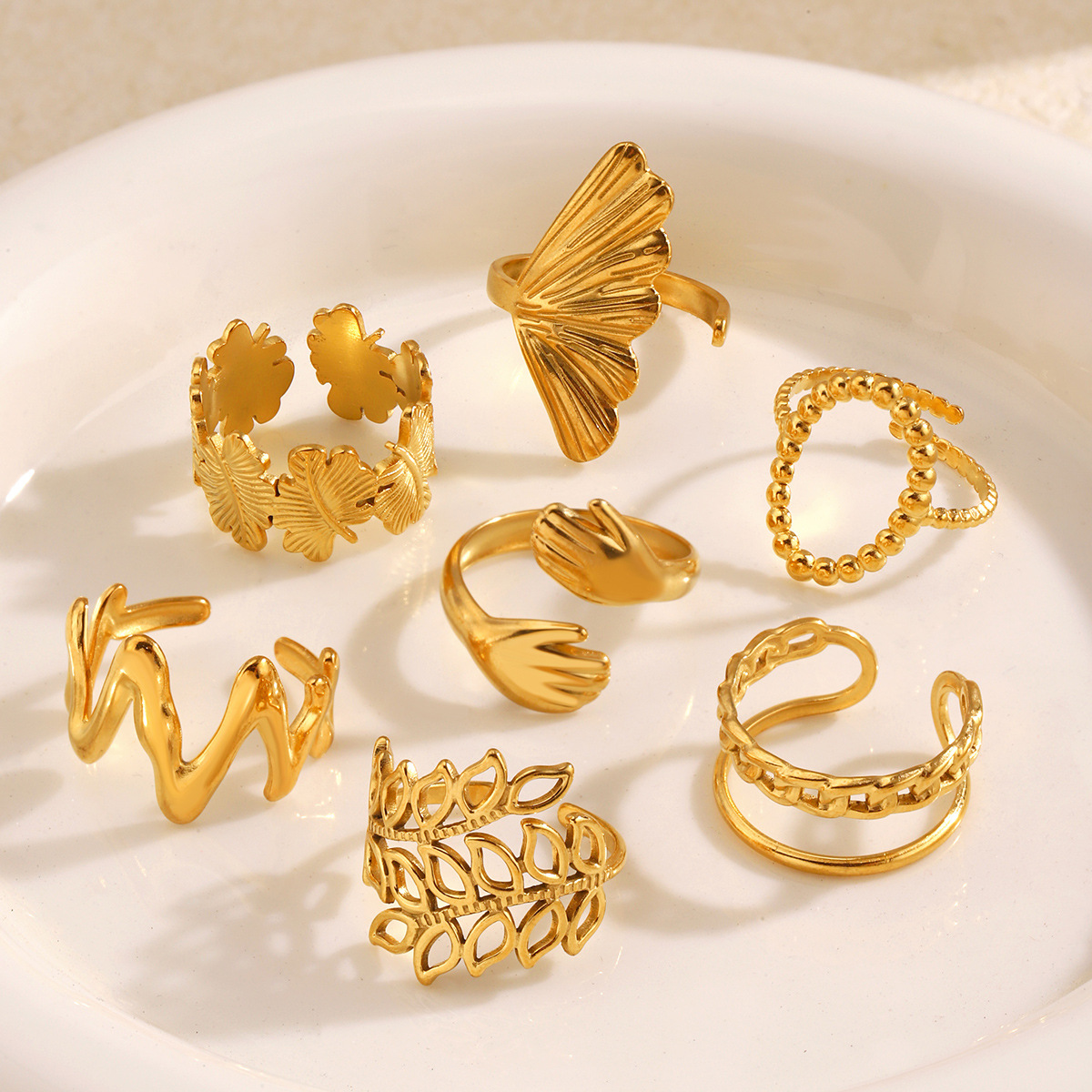 Cross-Border European and American Stainless Steel Line Simple Ring, Cut Out Leaf Chain, Personalized Versatile Titanium Steel Ins Style Jewelry