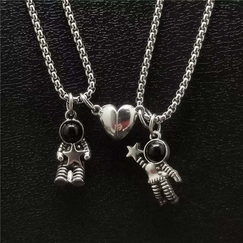 Popular astronaut pendant magnetic heart attraction couple necklace spaceman jewelry gift cute stainless steel chain