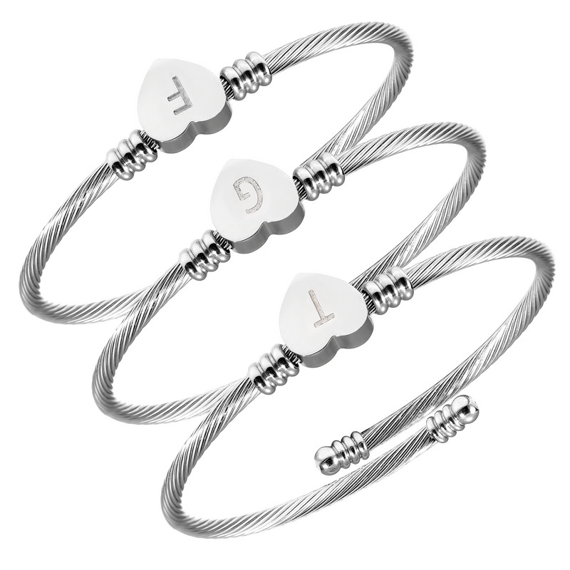 European and American love stainless steel wire woven open heart letter cable titanium steel peach heart bracelet jewelry bracelet