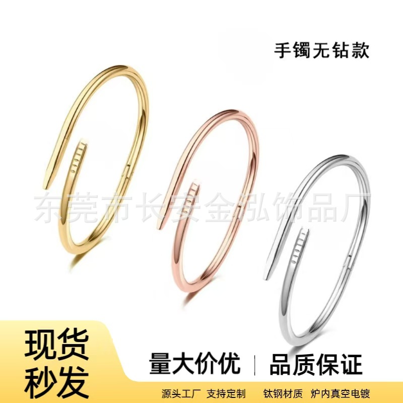 Diamond-encrusted Titanium Steel Rose Gold Nail Bracelet Stainless Steel Internet Celebrity Light Luxury Fashion Bracelet for Women