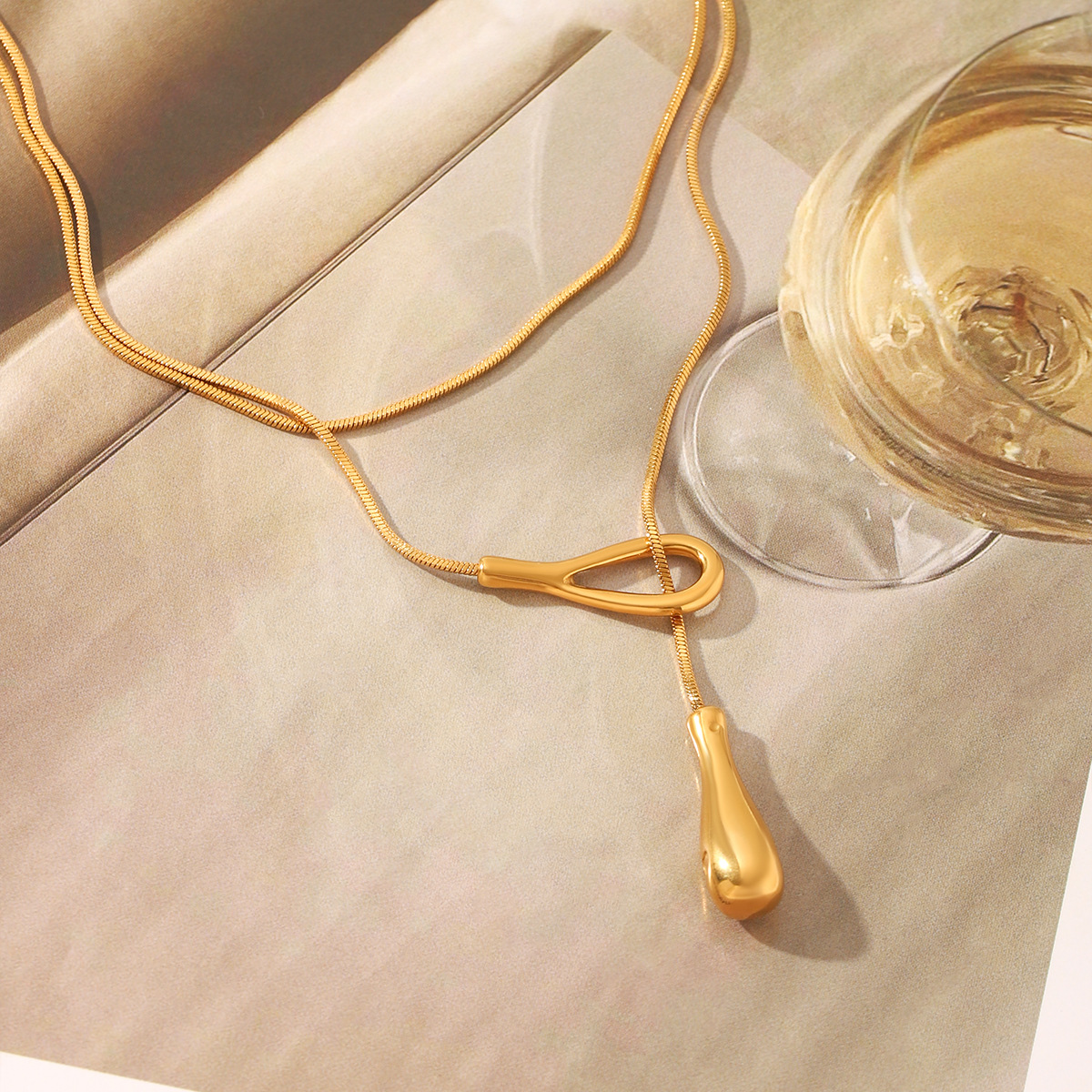 Cross-Border Popular Stainless Steel Water Drop Pendant Pull-Out Snake Bone Necklace Light Luxury High-End Versatile Sweater Chain