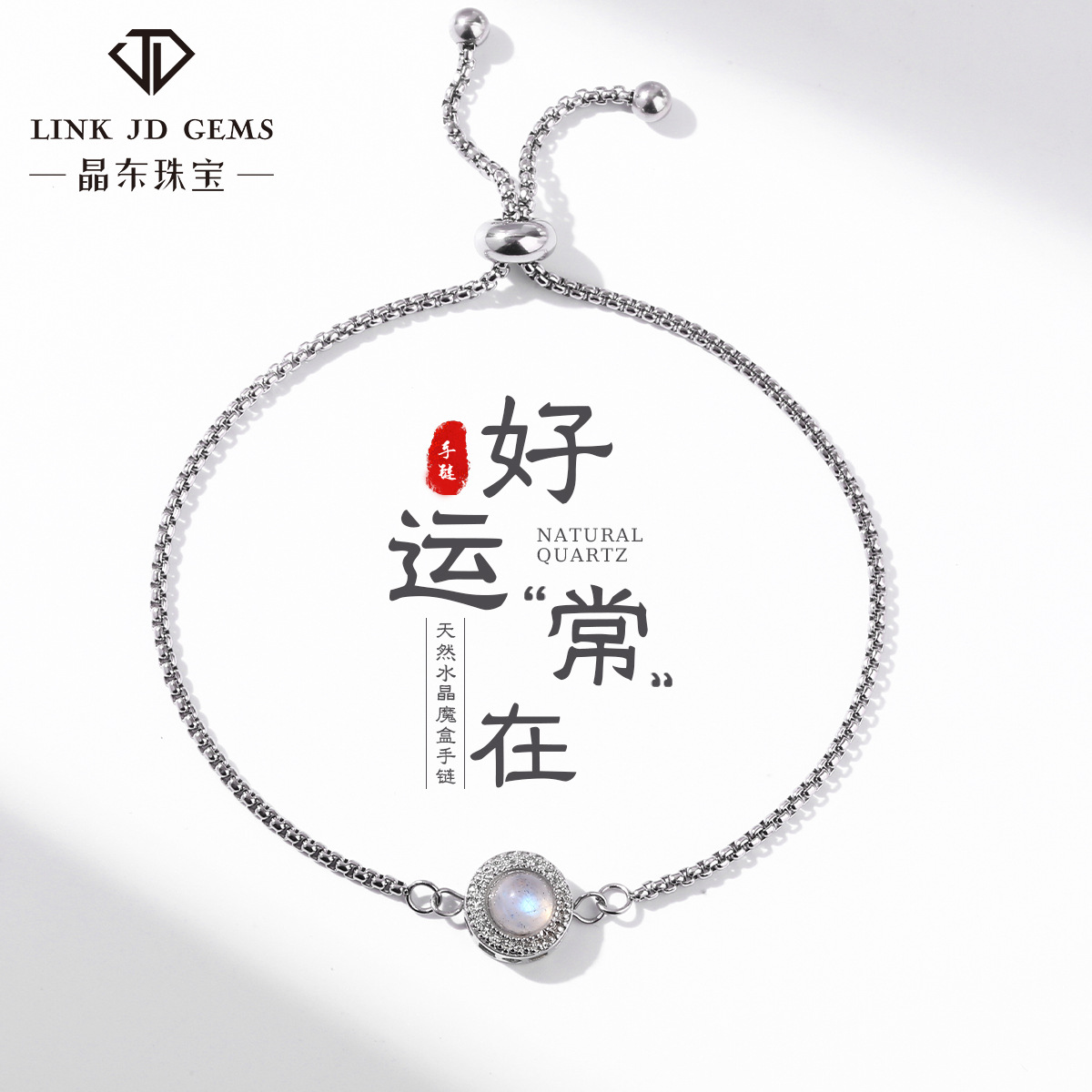 Jingdong Jewelry Natural Blue Moonstone Round Magic Box Stainless Steel Chain Bracelet Fashion Light Luxury Style Bracelet for Daughter
