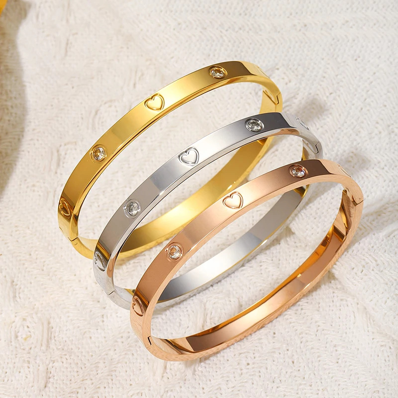 Fashionable, Simple, Light Luxury, Versatile, Unique Heart Design Stainless Steel Bracelet Jewelry Wholesale, Heart Style 2024 New Model