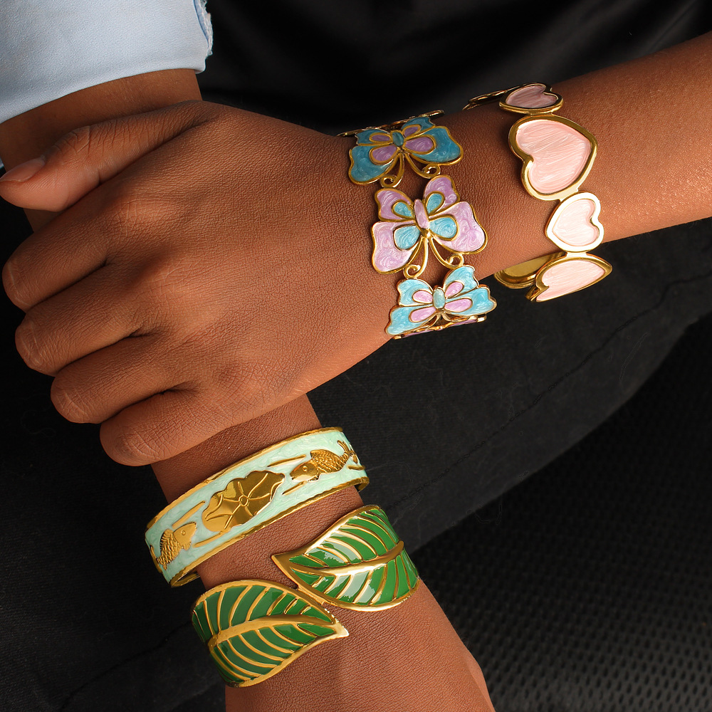 European and American Exaggerated New Stainless Steel Oil Pressure Color Drop Bracelet Advanced Sense Plated 18K Gold Open Bracelet Jewelry