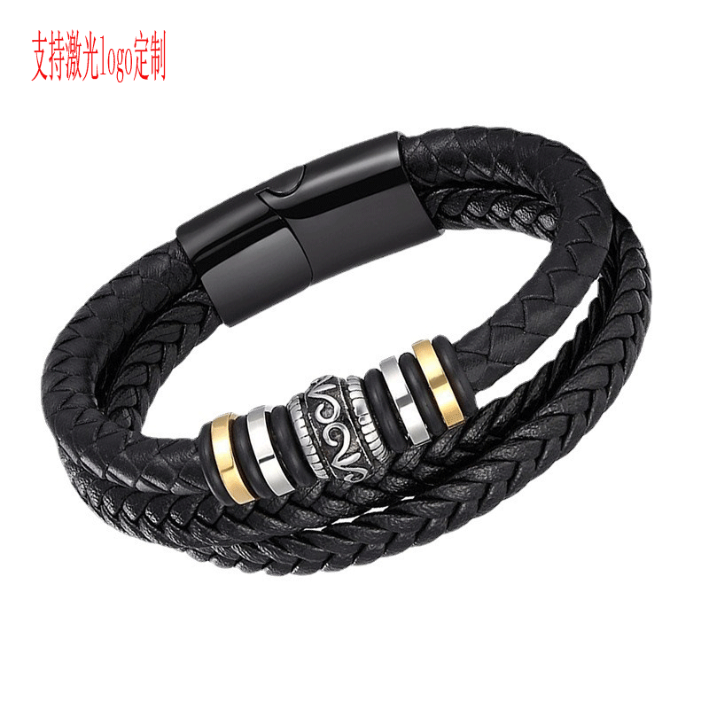 Leather Handmade Bracelet Cowhide Braided Multi-Layer Men's Leather Bracelet Vintage Stainless Steel Bracelet Bracelet Leather Strap