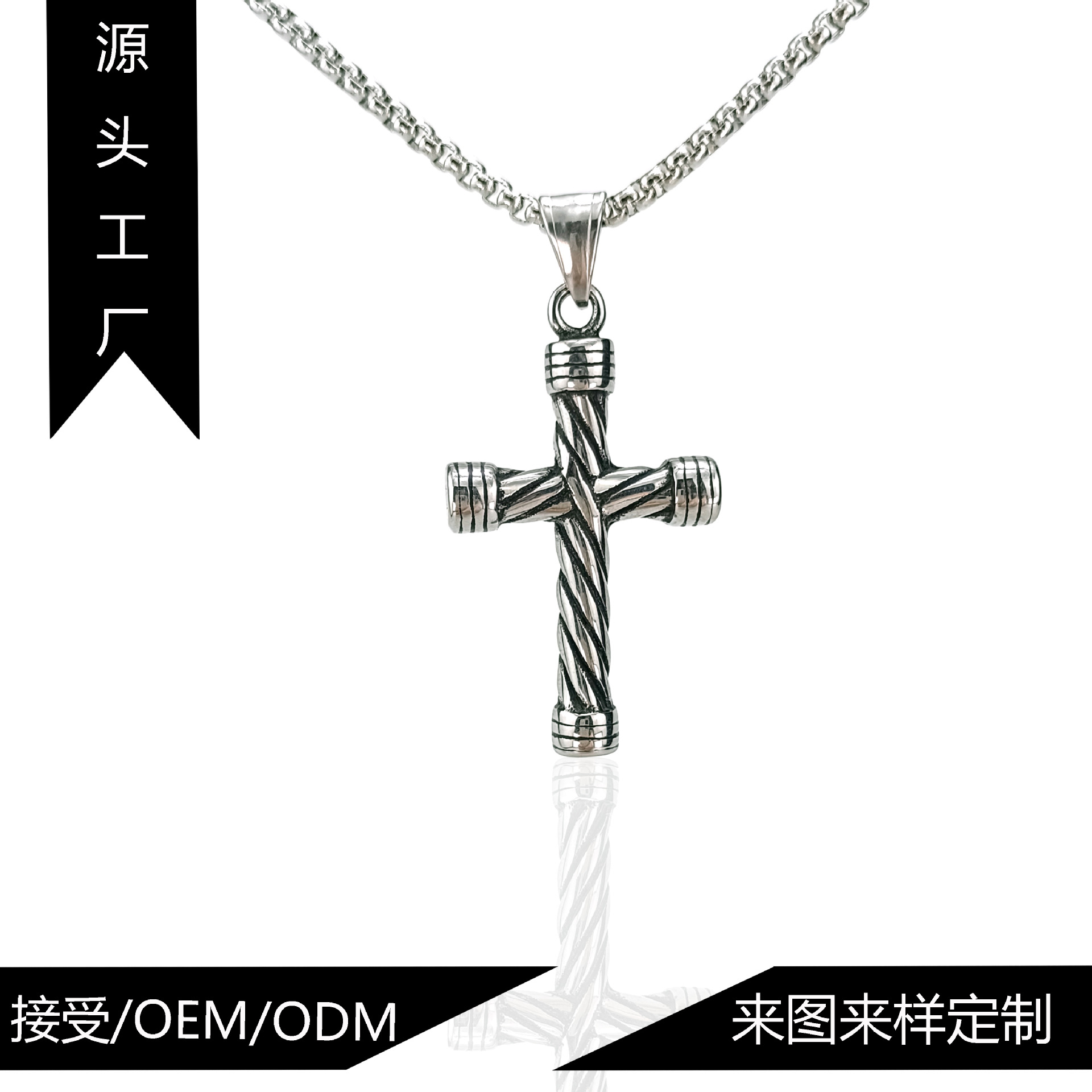 European and American Retro Striped Cross Pendant Fashionable Pendant Accessories Street Disco Hip-Hop Necklace Male Stainless Steel Chain