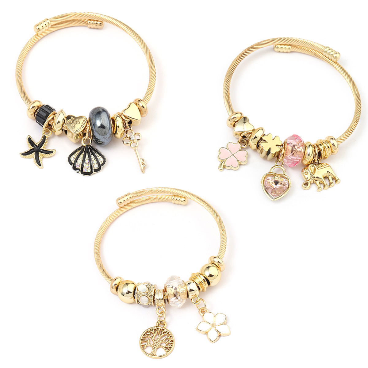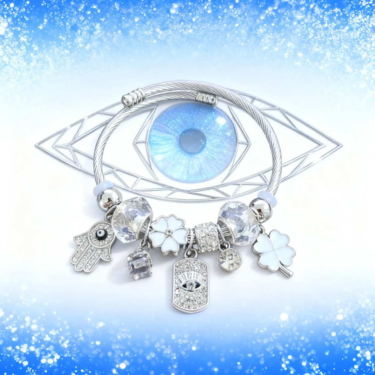 Cross-Border Popular Panjia Stainless Steel Bracelet White Rhinestone Alloy Devil's Eye God's Hand Four-Leaf Clover Jewelry
