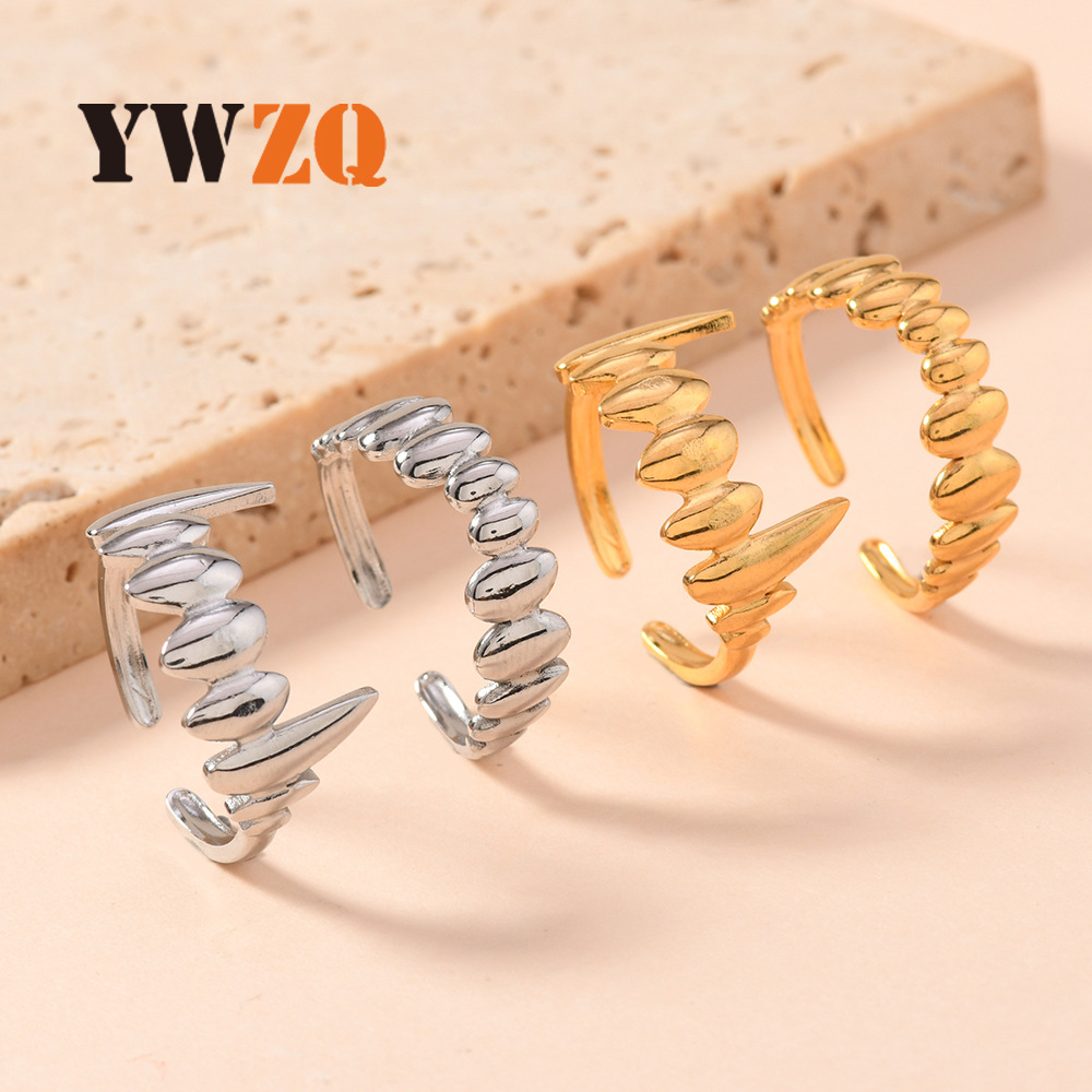 Cross-border fashion design punk style jewelry personalized stainless steel oil pressure fangs teeth titanium steel opening ring