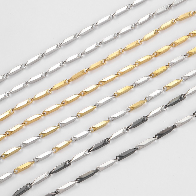 European and American Electroplated Gold Black Men's and Women's Necklace Stainless Steel Stick Chain Diamond Bracelet Titanium Steel Men's Bamboo Chain Wholesale