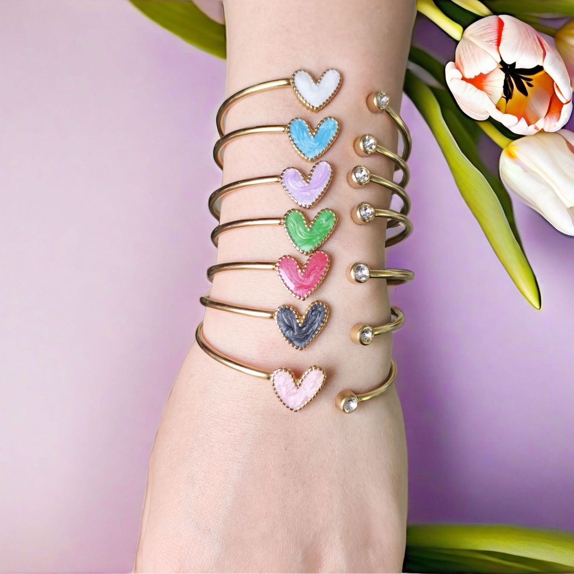 Cross-Border Popular Light Luxury High-End Stainless Steel Bracelet for Women, Niche Versatile Heart-Shaped Oil-Drip Open Titanium Steel Bangle